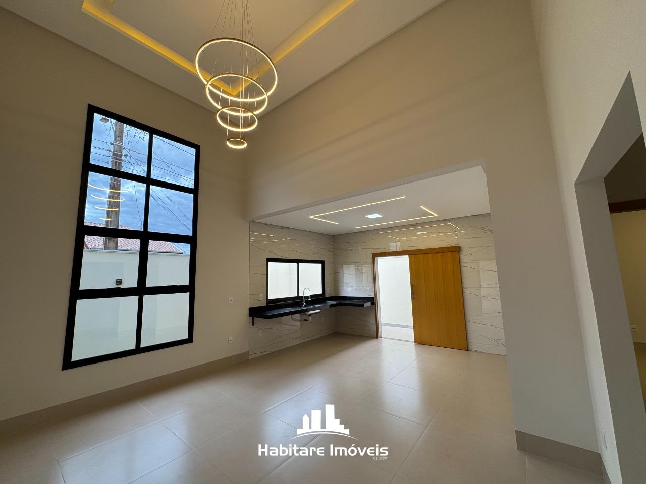 Imóvel moderno, bem localizado e com acabamentos de alto padrão! Ideal para quem busca conforto, segurança e um projeto bem planejado. Destaques do Imóvel: 3 quartos, sendo 1 suíte e 2 semi-suítes Sala com pé direito duplo Jardim de inverno Banheiro social com claraboia Cozinha funcional Jardim externo Garagem coberta Meio lote de esquina (excelente posição) Acabamentos e Diferenciais: Piso porcelanato de primeira linha Teto rebaixado em gesso com iluminação 100% LED Tubulação para ar-condicionado em todos os quartos Calçada em pedra portuguesa Sistema de segurança com alarme e cerca elétrica